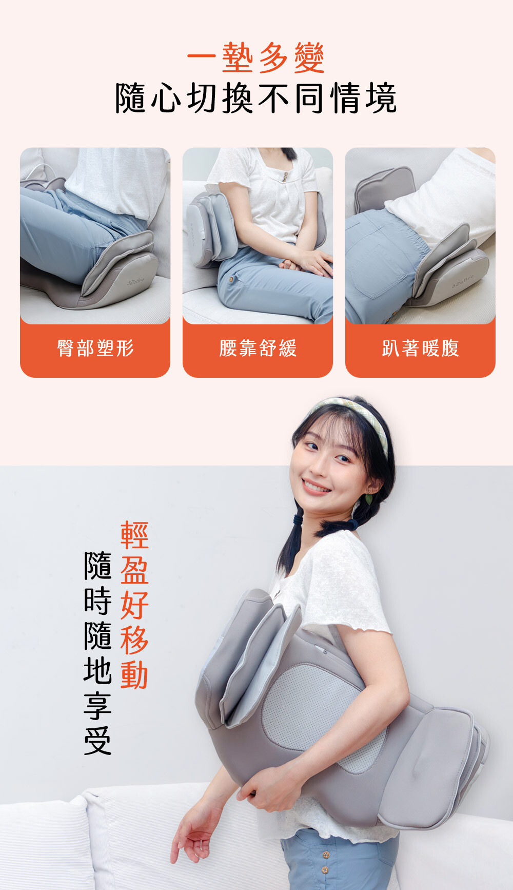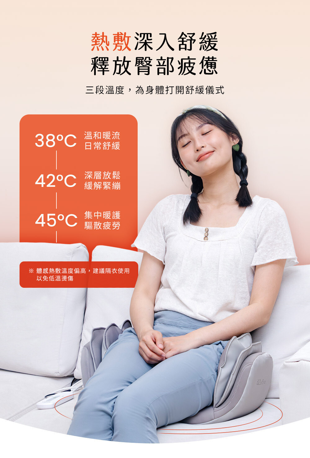 ❸ 三段溫度熱敷深入舒緩,釋放臀部疲憊