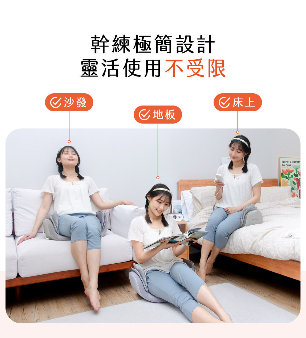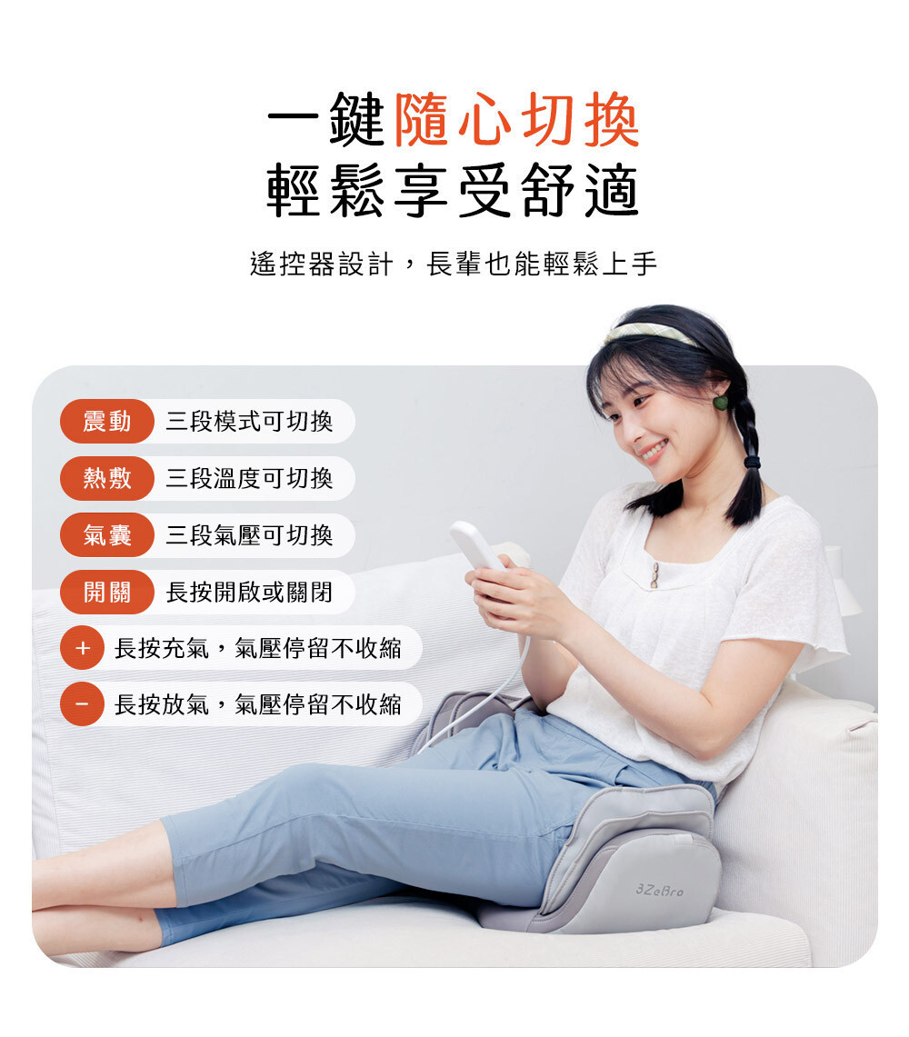 ❷ 兩側雙層氣囊收放,漸進式加壓推拿按摩