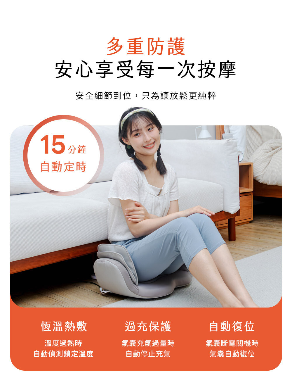 ❺ 15 分鐘自動定時,舒適放鬆更安全